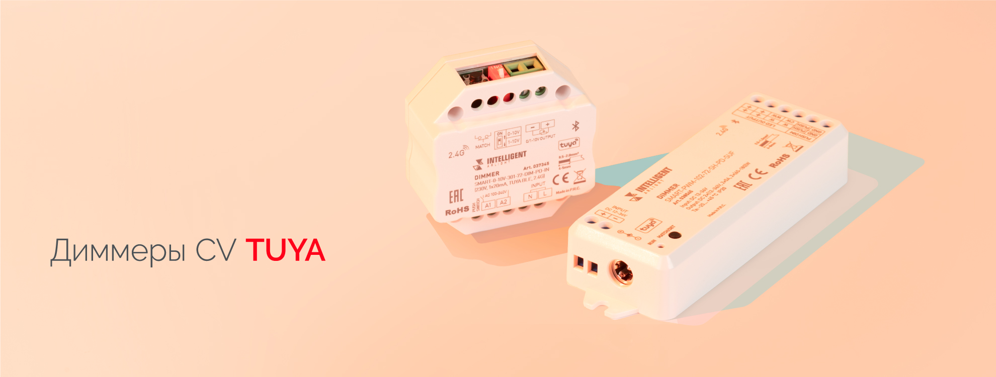 Диммеры с поддержкой беспроводной облачной платформы TUYA предназначены для управления со смартфона многоцветными светодиодными лентами RGBW, монохромными лентами и другими светодиодными источниками света с питанием постоянным напряжением 12–48 В и поддерживающими управление ШИМ (PWM).