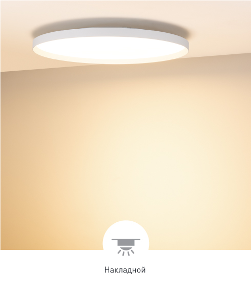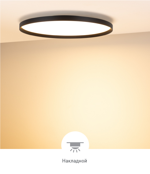 В серии представлены следующие варианты размеров световой части светильника: Ø350×70 мм, Ø450×70 мм, Ø600×73 мм, Ø800×73 мм.