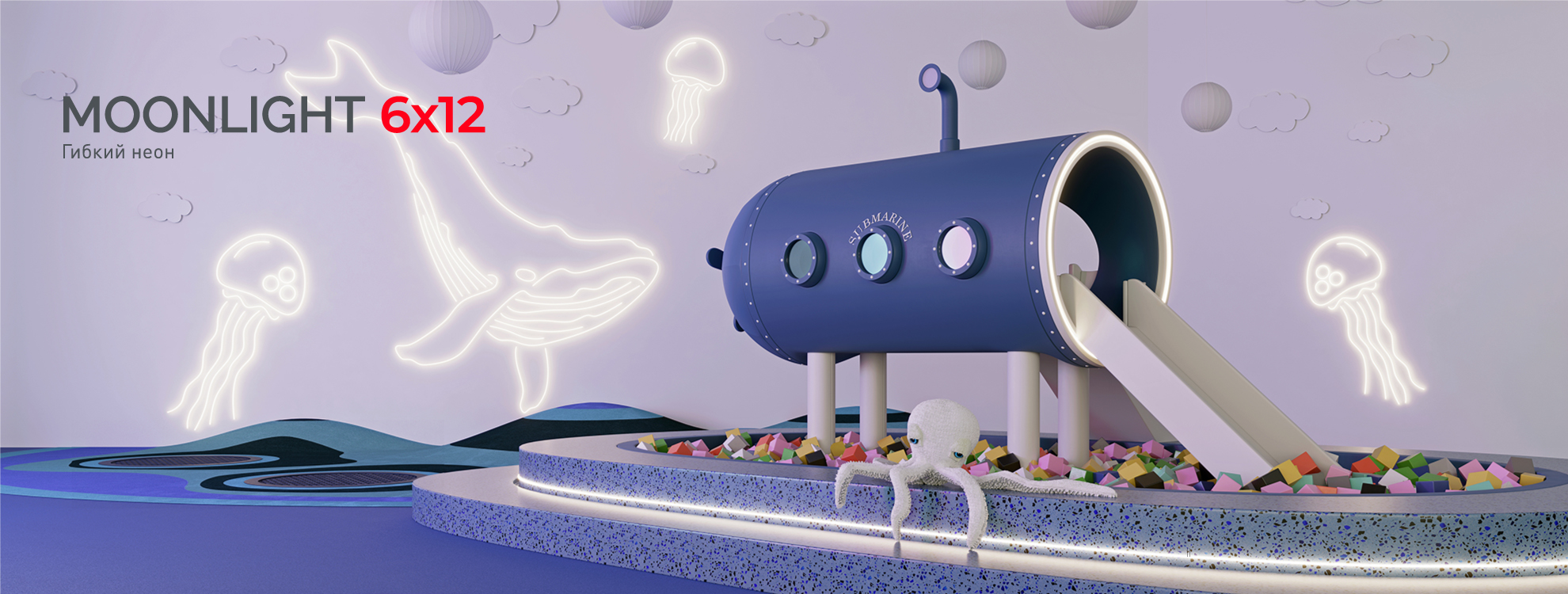 Для мебели За счет миниатюрных размеров сечения (6×12 мм) гибкий неон легко встраивается в мебель или между узких реек.