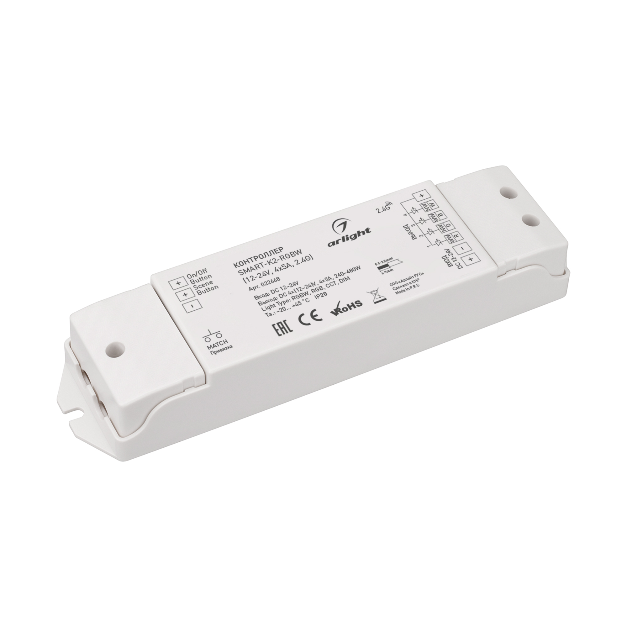 Контроллер SMART-K2-RGBW (12-24V, 4x5A, 2.4G) (Arlight, IP20 Пластик, 5 лет)