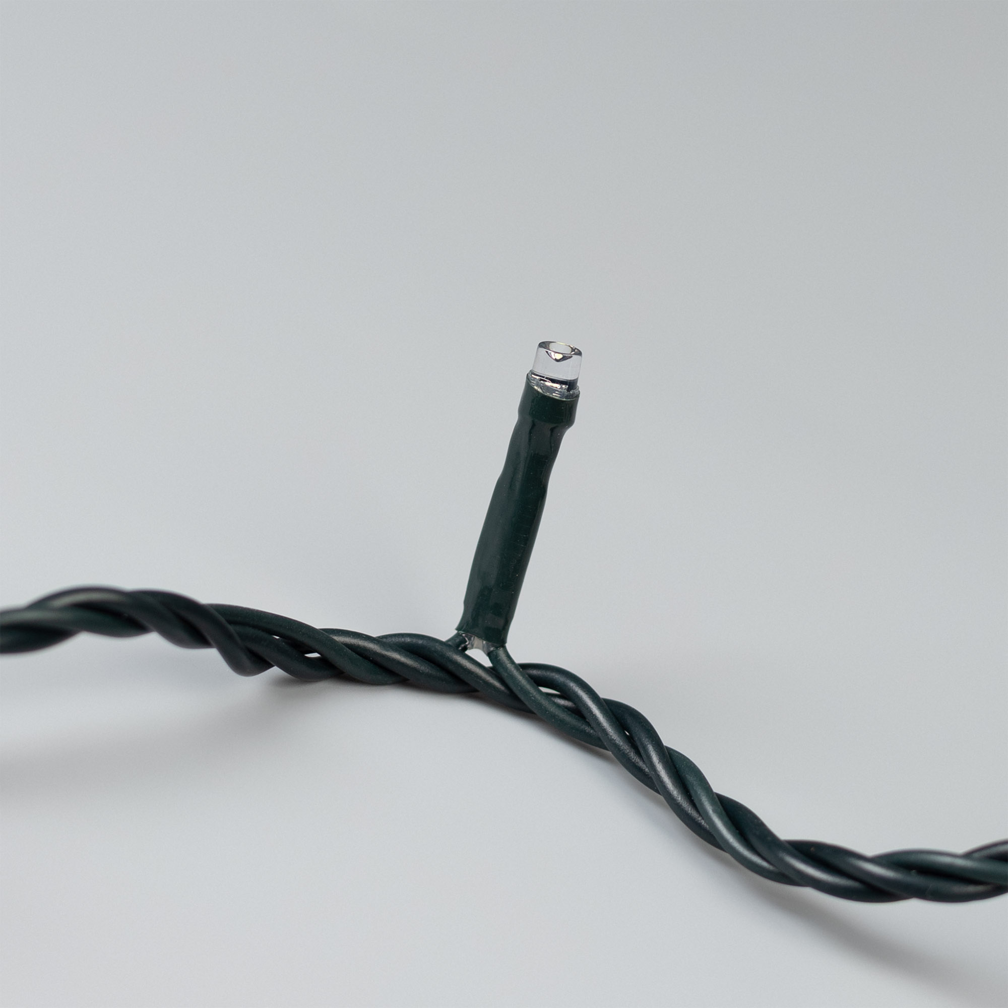 Светодиодная нить Home. Размер 5000 мм. Цвет свечения БЕЛЫЙ (6000 К). 50 светодиодов размером 5 мм со статическим эффектом свечения с резким световым рисунком (прозрачная вогнутая линза). Провод темно-зеленый, ПВХ. Питание 230 В, Мощность 3.5 Вт, защита IP20, применение в помещении. Аксессуар для подключения в комплекте.