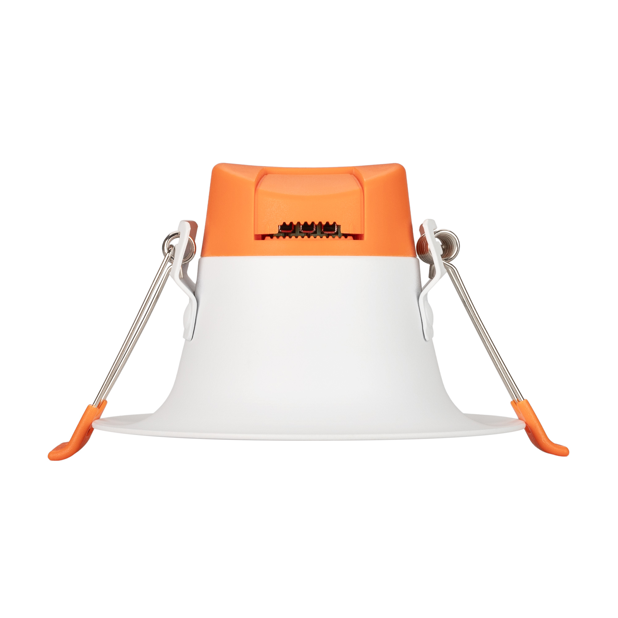Встраиваемый светильник даунлайт. Мощность 7.6 Вт, св. поток 660 лм, 87 лм/Вт, дневной 4000 K, CRI>90, угол 100°, напряжение питания 230 В. Белый круглый корпус из алюминия, степень защиты IP20. Размер: диаметр 102 мм, высота 63 мм. Монтаж встраиваемый, установочное отверстие: диаметр 90 мм. Пульсация <3%.