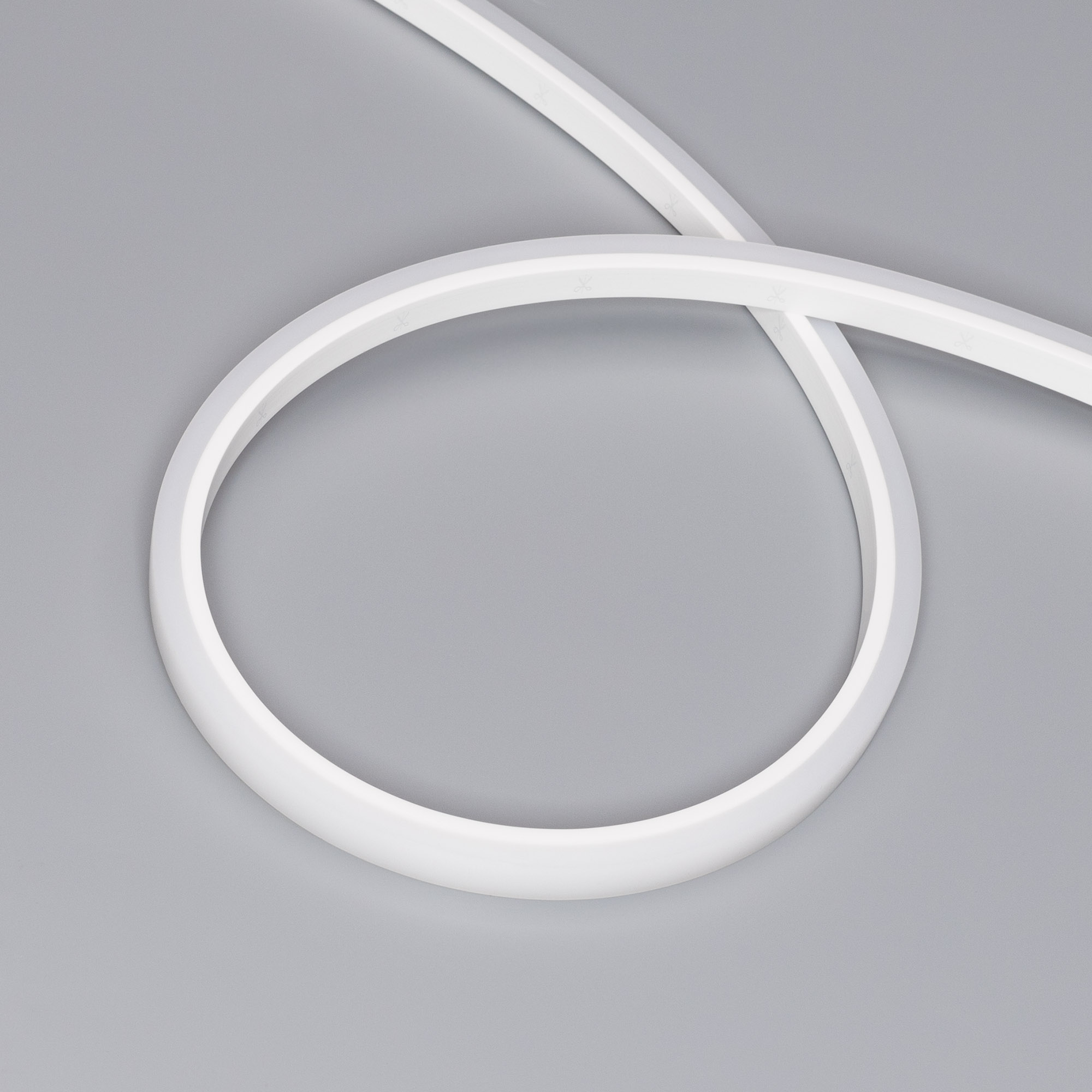 Гибкая герметичная лента (неон серии WAVE), сечение 10×10 мм. Светодиоды SMD2835 144 шт/м. Цвет свечения ТЕПЛЫЙ БЕЛЫЙ (3000 K), индекс цветопередачи CRI>90, световой поток 346 лм/м, угол излучения 170°. Мощность 5 Вт/м, питание 24 В. Оболочка из Полиуретана (PU). Класс пылевлагозащиты IP68. Размеры 3000×10×10 мм. Не подлежит резке. Вертикальный изгиб TOP, минимальный радиус изгиба 75 мм. Катушка 3 м. Цена за 1 м. Гарантия 3 года.
