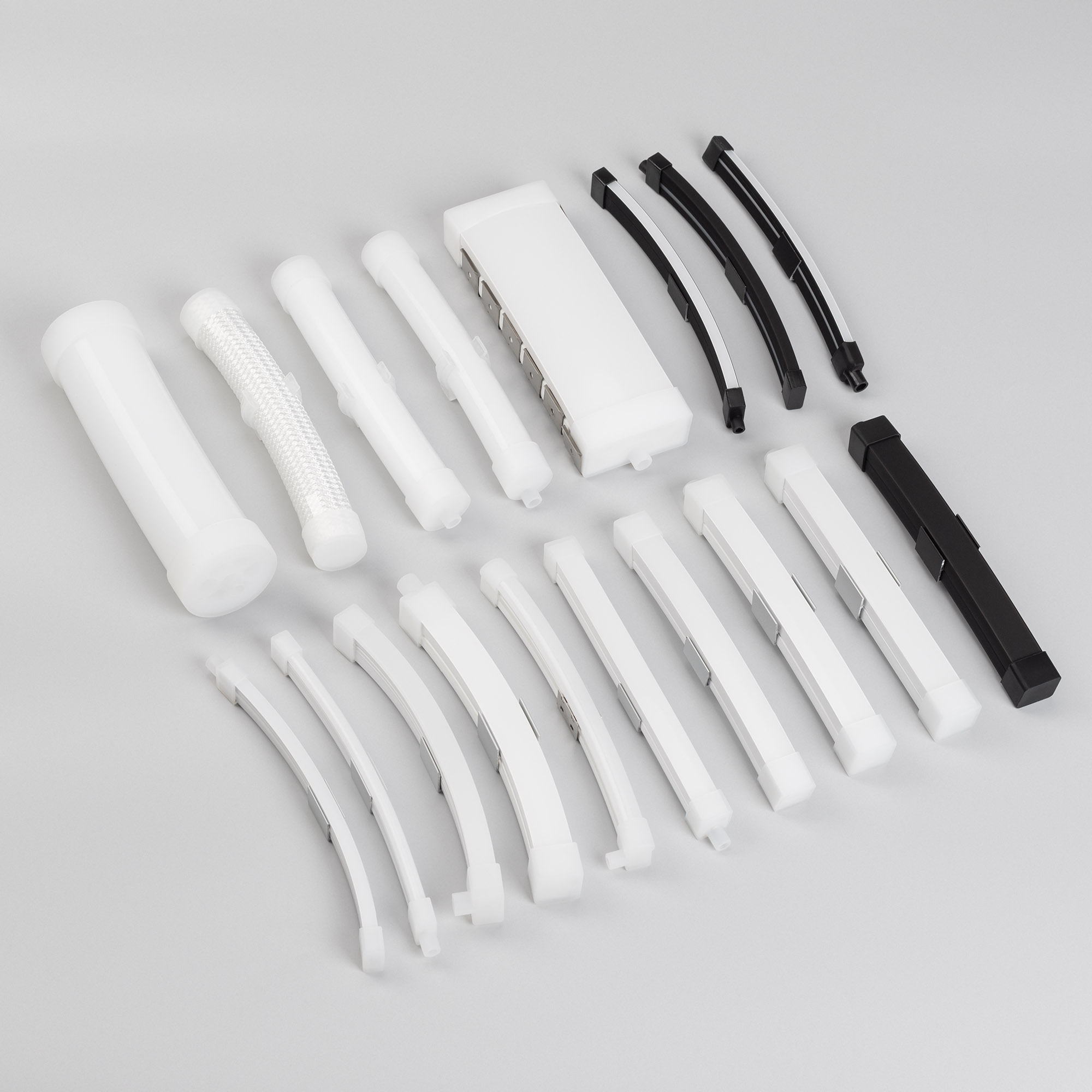 Набор образцов силиконового профиля WPH-FLEX Arlight. Комплект содержит 18 образцов силиконовых профилей с заглушками и держателями. Длина отрезков 150 мм.