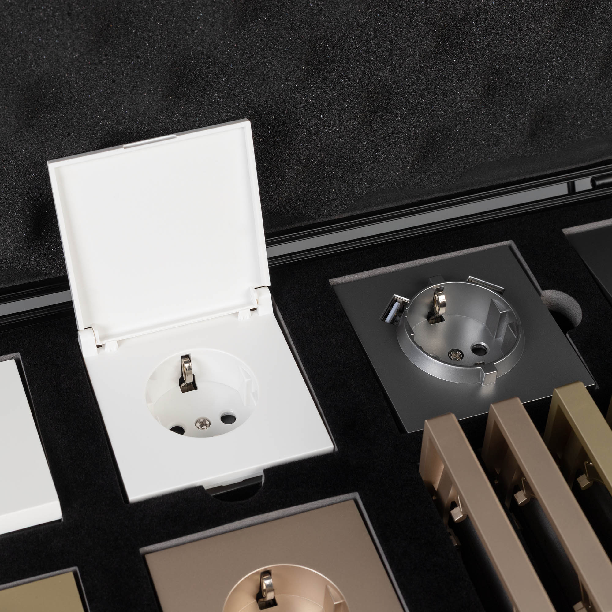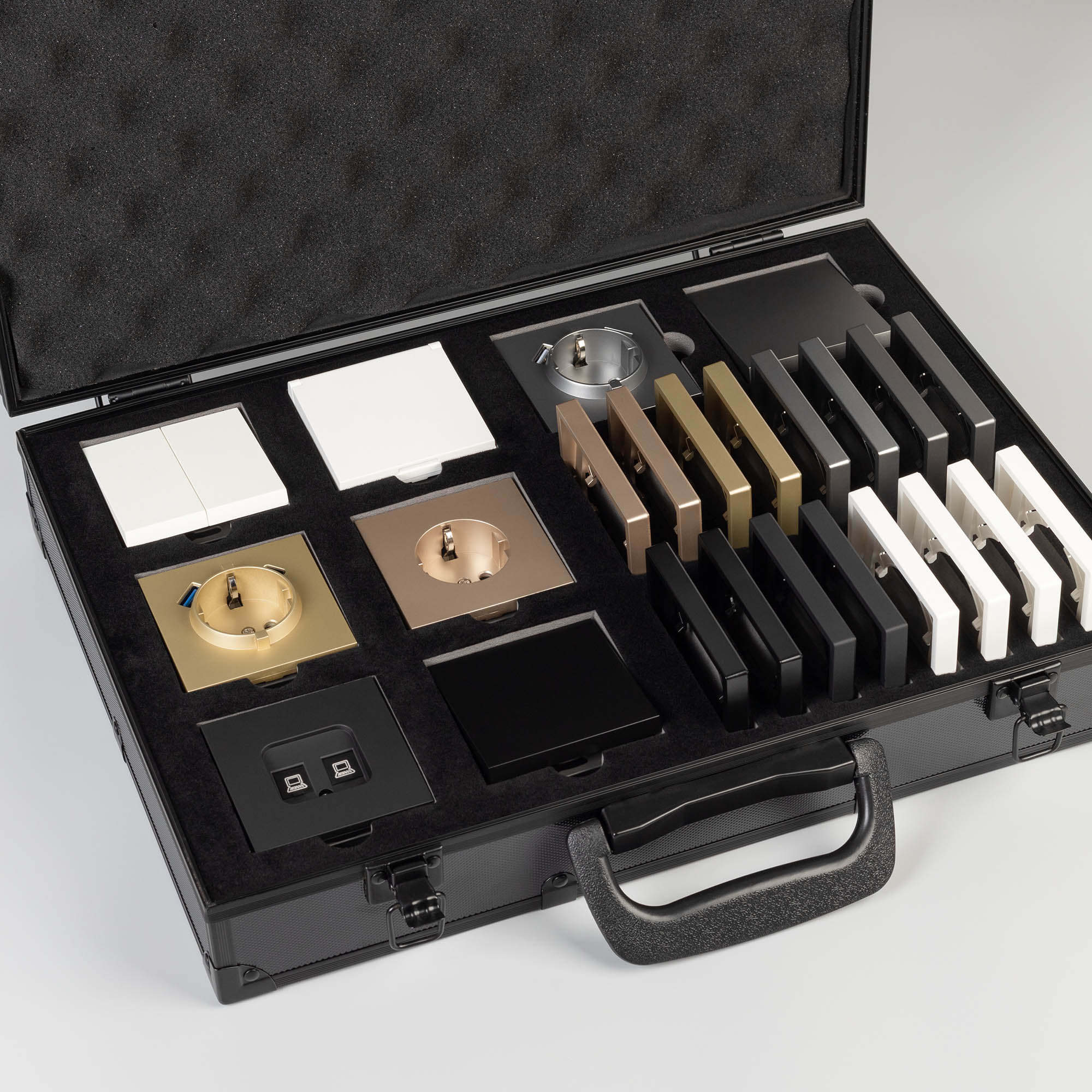 Демо-кейс с наполнением электроустановочных изделий серии TENDO.