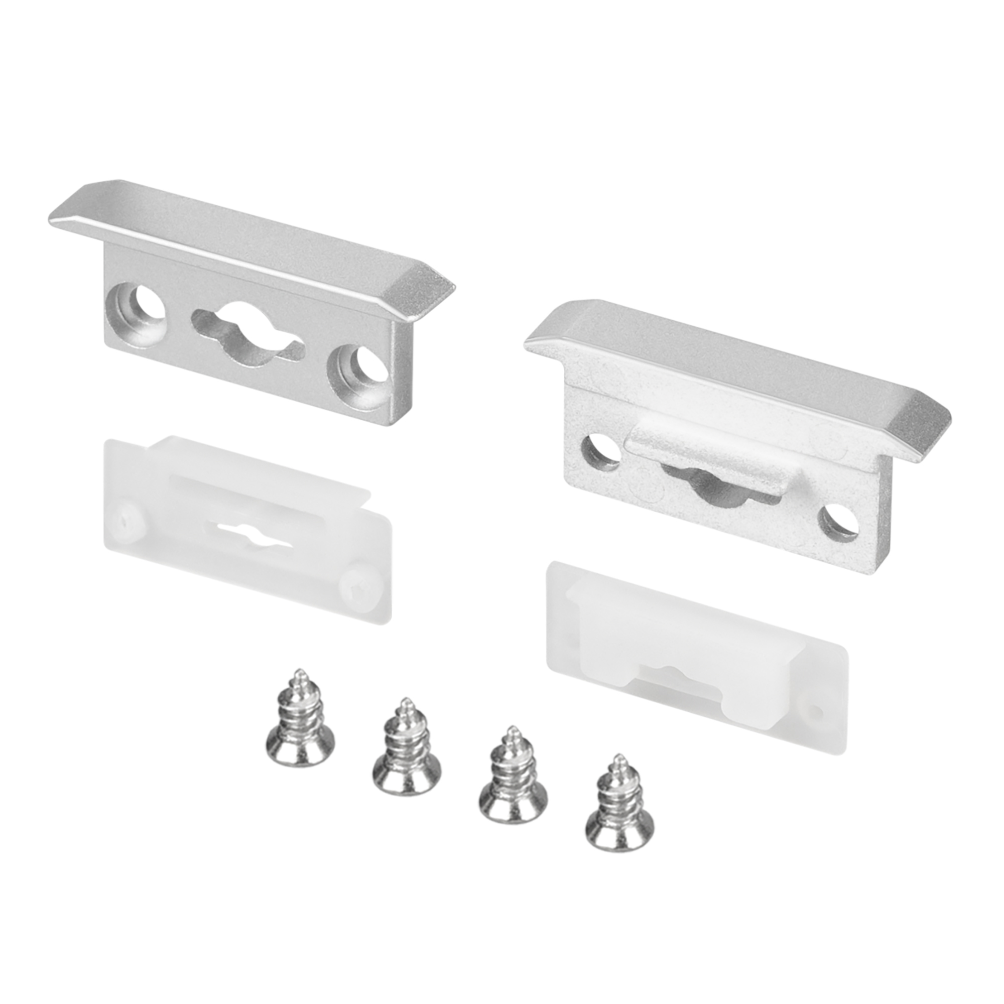 Серебристые заглушки с отверстием (2 шт.) для профиля FLOOR27-H11-F. Придают законченный вид светильнику, отверстия позволяют организовать вывод кабеля питания. Цена за комплект.