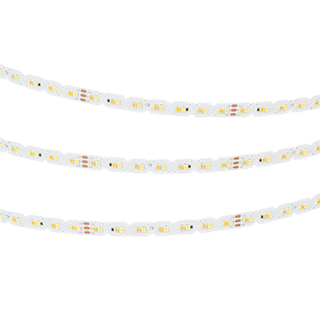Светодиодная лента RZ серии A140 с фигурной платой в виде волны, позволяющей изгибать ленту на плоскости. Изменяемый цвет свечения MIX в диапазоне от холодного белого 6000K до теплого белого, имитирующего цвет пламени свечи 1900K. Управляется любым совместимым MIX-контроллером. Максимальный радиус изгиба на плоскости — 50 мм. Напряжение питания 24 В, светодиоды SMD 2835, 140 шт/м. Лента предназначена для декоративной подсветки рекламных вывесок, букв, витрин. Обязательна установка на профиль.