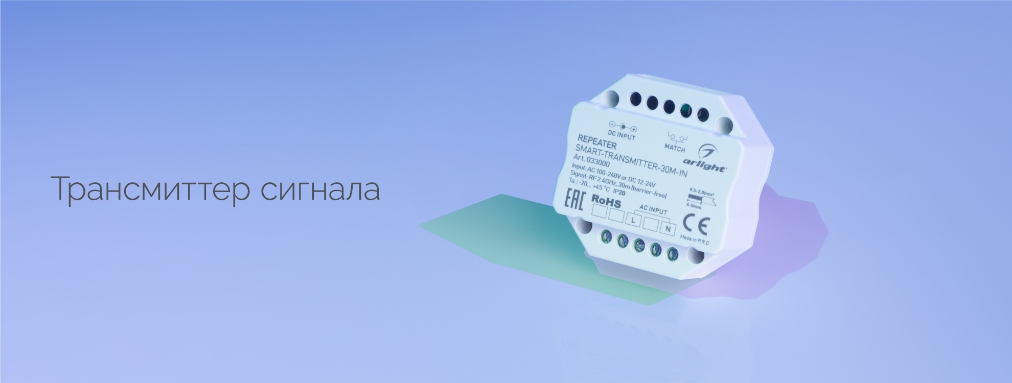 Контроллер-усилитель SMART-TRANSMITTER-30M-IN (230V, 2.4G) (Arlight, IP20 Пластик, 5 лет)