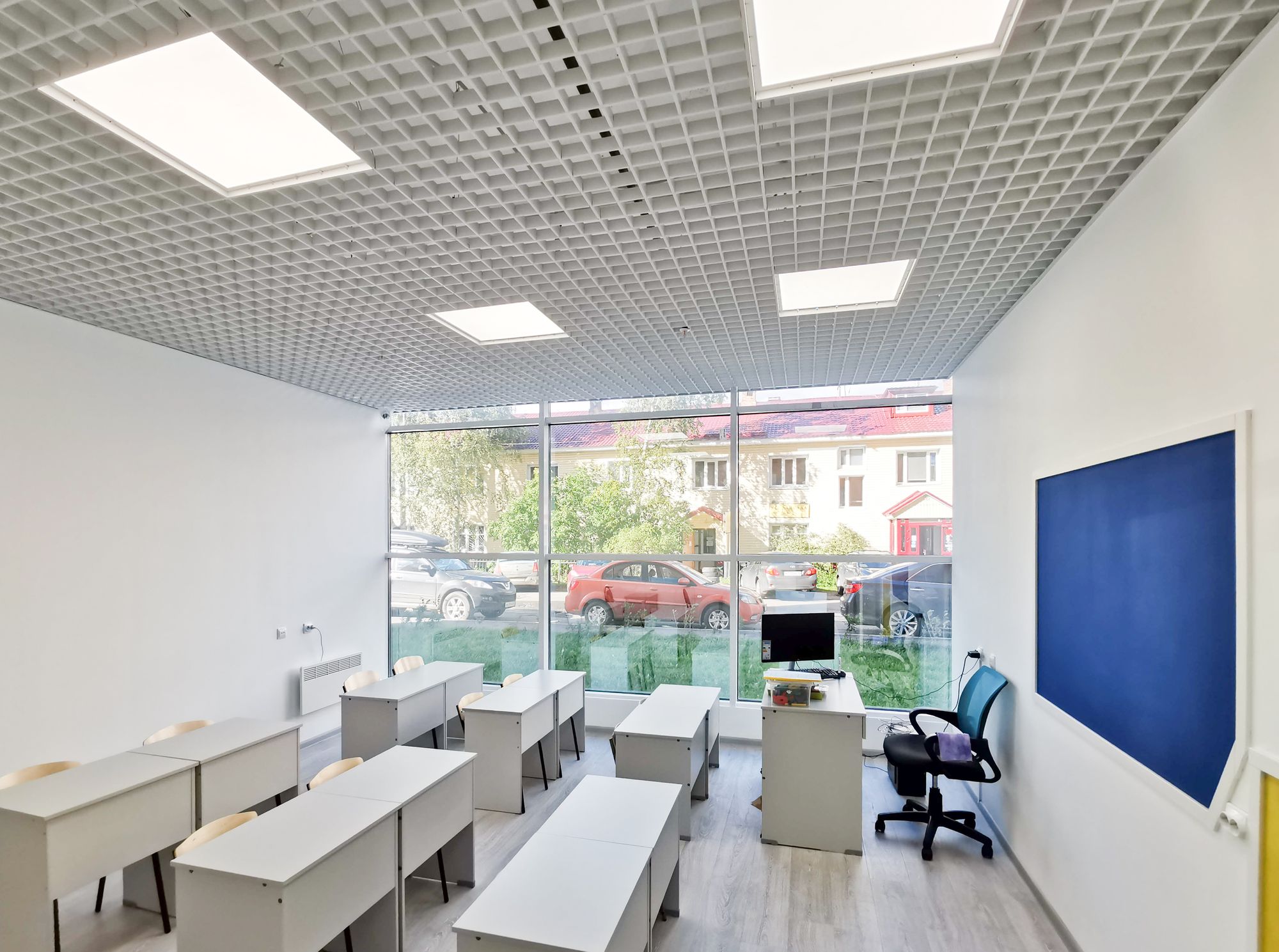 Преподаватели, дети и родители оценили комфортное освещение в школе. Источники света подобраны в соответствии с требованиями к нормам освещенности в образовательных учреждениях. Профессиональный светотехнический расчет позволил подобрать идеальные светильники, которые полностью соответствуют специфике каждого помещения. Встраиваемые панели TITAN обеспечивают равномерную засветку и уместны в образовательных классах и спортивном зале. Стильные подвесные светильники TOR с разноцветным корпусом оживляют зону холла и настраивают на увлекательное обучение. Накладные светильники RONDO обладают высокой световой эффективностью и используются в санузлах. Благодаря комфортному освещению значительно повышается продуктивность учеников.