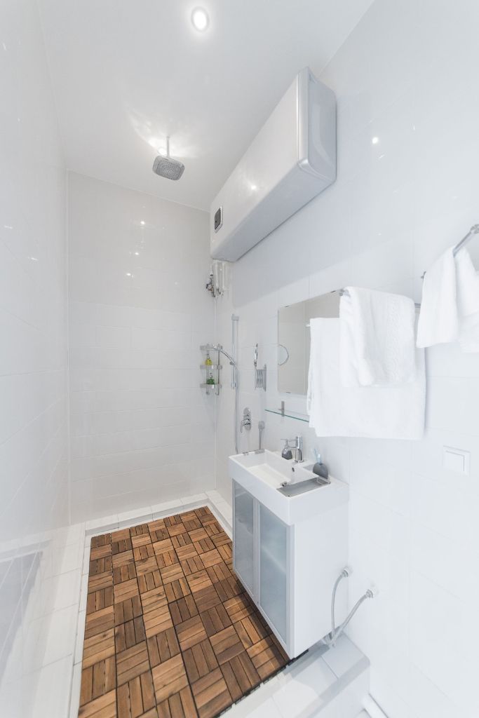 Для создания особой атмосферы в квартире-студии был выбран синий цвет светодиодной подсветки.
